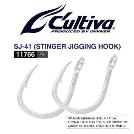 Owner SJ-41TN Stinger Jigging Hook é um anzol utilizado nas modalidades “Jigging” para montagens de support hook. È o mais utilizado devido ao seu formato tradicional, de haste curta e indicada para peixes como Olho de Boi, Olhetes, Dourados, entre outras espécies tanto de àgua doce quanto salgadas.