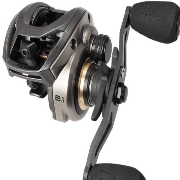 A EVOX recebe rolamentos em aço inoxidável (11+1), coroa em latão, pinhão em latão apoiado por 2 rolamentos, recolhimento de 8.1:1 e 4 discos em carbono que são capazes de gerar uma tração máxima de 8kg! E seu sistema de freio é centrífugo com duplo controle (interno e externo).