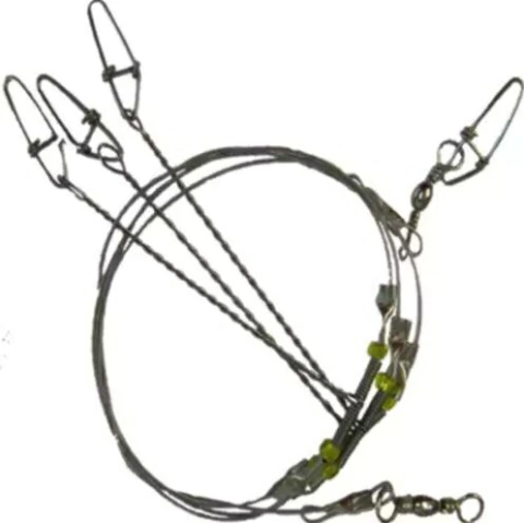 Chicote fabricado em cabo de aço flexível com girador e snap. Possui pernadas em arame de aço trançado. Com sistema de encaixe para 2 e 3 anzóis possibilita utilizar o anzol da sua preferência. É um ótimo acessório para pesca quando o alvo é um peixe com dentição.