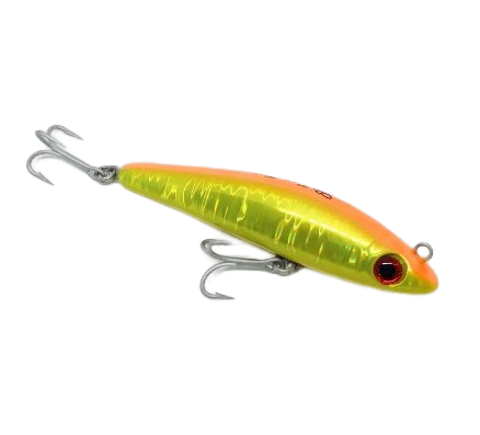 Isca Borboleta Tan Tan. Para pesca: Dourados, Tucunaré, Robalo, Traíra, Cachorra, Bicuda, Black Bass entre outros predadores. Isca com nado de sub-superfície e ação de Twitch que imita um pequeno peixe se debatendo na superfície da água. Quando tracionado com toques de ponta de vara, faz a isca dar pequenos mergulhos ficando a 10cm da superfície da água. Excelente quando os peixes estão atacando suas presas próximo da superfície. Também são atraídos pelos seu rattlin (chocalho), proporcionando ataques por irritabilidade.