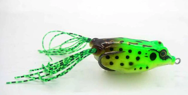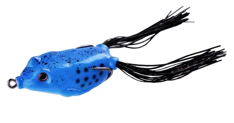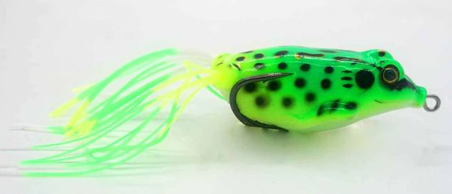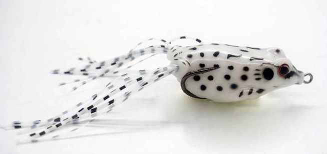 - O formato da Sapo Frog imita um sapo, o que atrai a atenção das traíras. Ela possui pernas de borracha que se movem na água, criando vibrações e sons que simulam um sapo nadando ou saltando.