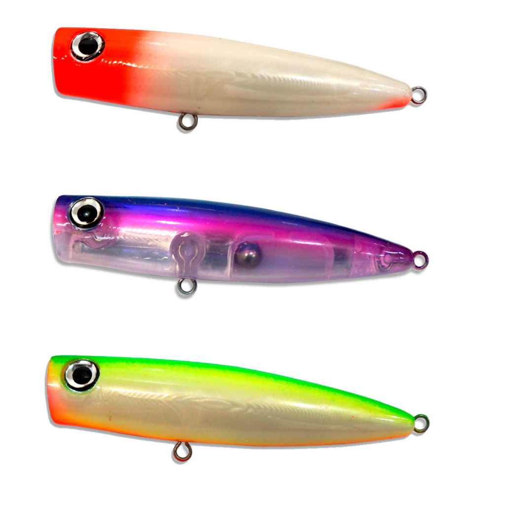 Versão menor da Olhetão. Ação Popper, usada tanto no mar para Anchovas, Xaréus, Dourados, Olhetes e Olhos-de-Boi, quanto na água doce para Tucunarés, Trairões, Cachorras e outros. Pode ser trabalhada com puxadas longas pra fazer grandes bolhas na água ou com toques curtos e consecutivos para nadar em zigue-zague.
