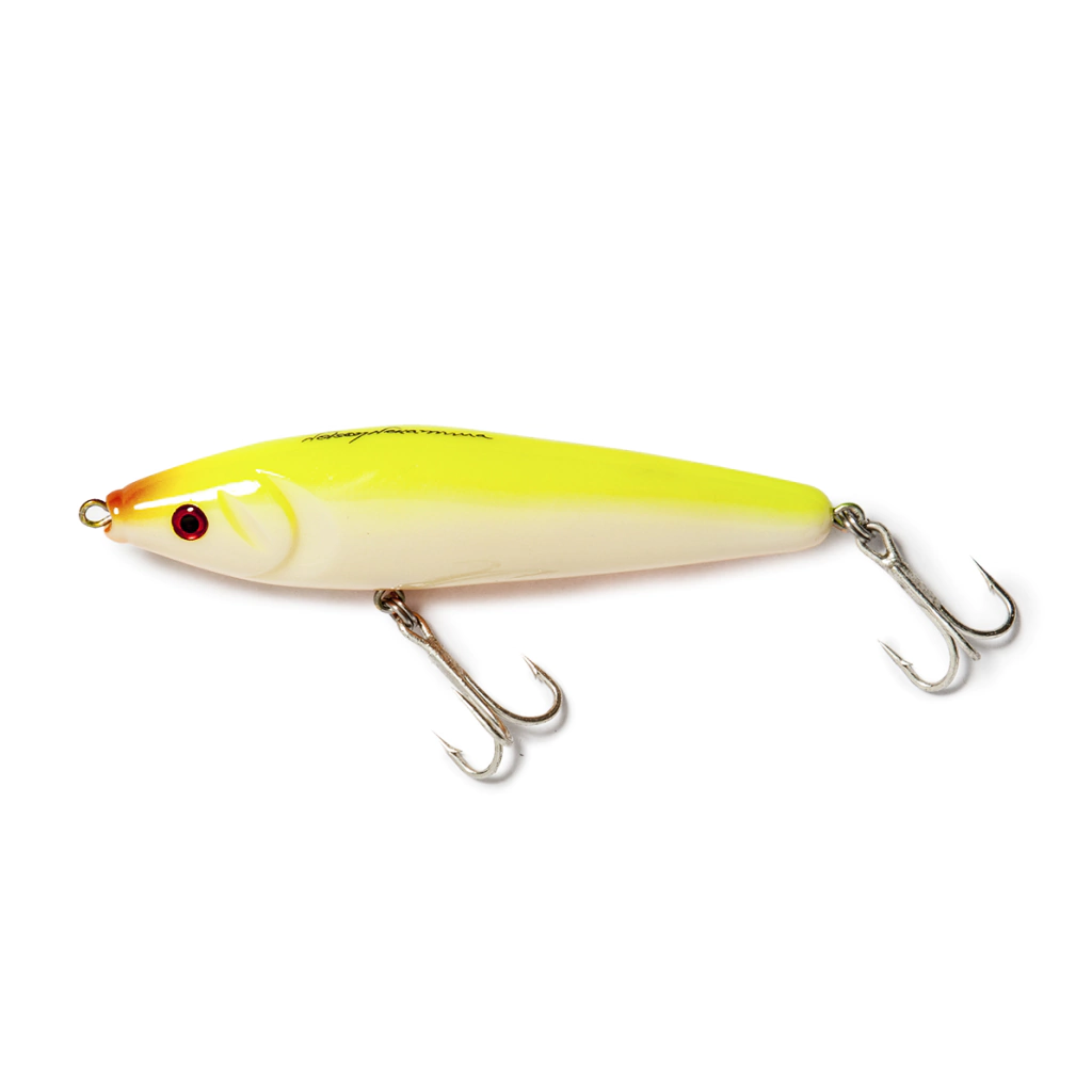 Isca artificial superfície com pitão de arrasto na extremidade superior e lastreada na parte inferior, a sua posição na água é vertical (em pé) com aproximadamente metade do corpo para fora dágua quando tracionada com toques de ponta de vara, a ação é de um peixe ferido agonizando na superfície.