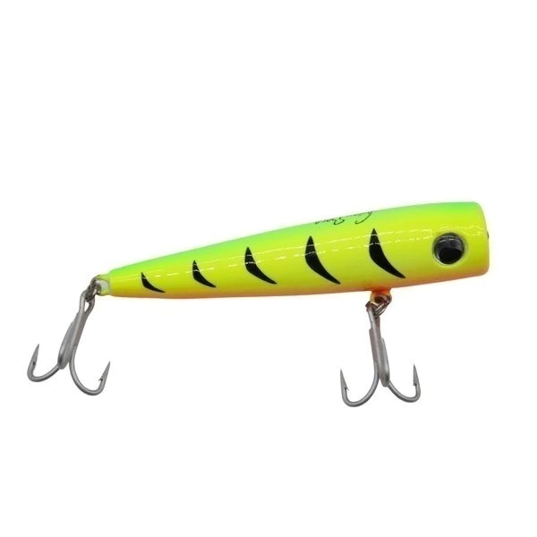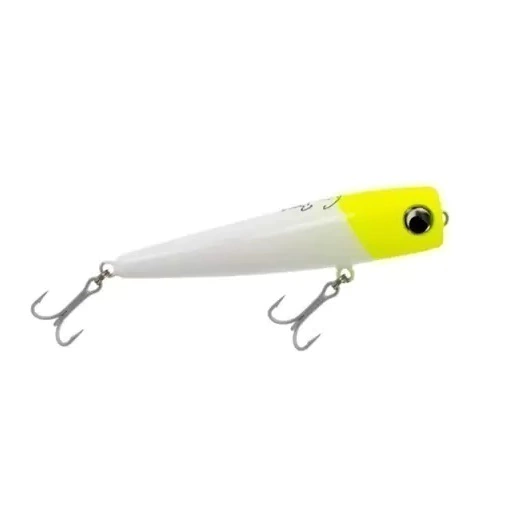 Possui uma boca côncava que produz um "splash" na água quando trabalhada, como se pequenos peixes estivessem se alimentando ou fugindo do predador. Cores diferenciadas extremamente atraentes chamando ainda mais a atenção.