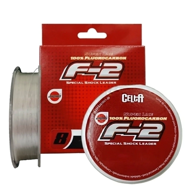 A Linha Celta F-2 Super Line Shockleader é fabricada no JAPÃO com a mais alta tecnologia. Uma linha especial para fazer o seu leader, pernadas e chicotes. É confeccionada com 100% Fluorocarbon que oferece uma resistência a abrasão incomparável.