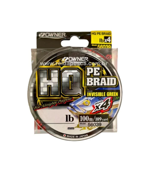 LINHA DE MULTIFILAMENTO OWNER HQ PE BRAID 100MTS 4 FIOS (56039) Esta linha pode responder à todas as pescarias, pois o equilíbrio no nível mais alto foi alcançado para ajuste de suavidade, sensibilidade e intensidade. Especialmente a intensidade, percebeu o aumento de 10% dos produtos convencionais. Seguindo a política de transparência e responsabilidade da fabricante Owner, todas as marcações de diâmetros são precisas e as resistências de força marcadas nas embalagens se referem sempre ao mínimo realizado pelos testes. Ficha Técnica Metragem por carretel: 100 metros Composição: Polietileno Cor: Verde Musgo Origem: Fabricado no Japão
