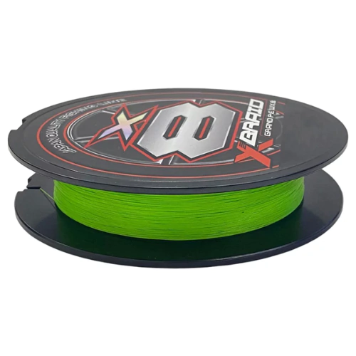 Linha de Multifilamento 8 fios, trançados em um revolucionário maquinário, de alta precisão, utilizando como matéria prima um novo Polietileno, denominado Grand PE. Ele possui alta qualidade e resistência, resultando em uma nova concepção em linhas de multifilamento, muito mais resistente a tração e a abrasão. A X-Braid Grand PE, tem as tranças fortemente unidas, que a tornam de diâmetro uniforme, muito mais macia e incrívelmente resistente.