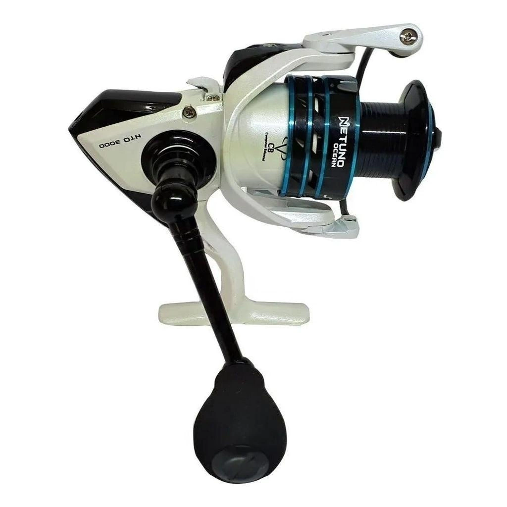 O molinete Saint Plus Netuno possui pintura perolizada, balanceamento computadorizado e pegadores da manivela em EVA, tornando sua pescaria mais agradável.