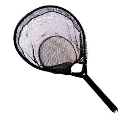 Haste fabricada em alumínio com tela emborrachada, cabo emborrachado, conta também com um cordão com mosquetão para evitar a perda durante uma eventual queda do caiaque.