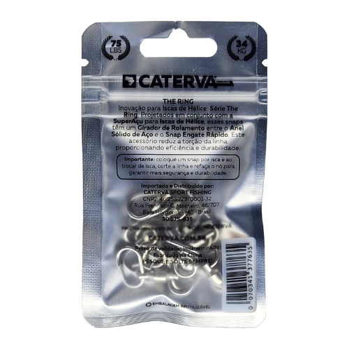 Hoje, o maior problema das iscas de hélice é justamente a torção da linha provocada pelo giro da isca em seu próprio eixo. Durante anos, os pescadores precisavam comprar separadamente um girador de rolamento e acoplar um snap a ele, o que resultava em um conjunto (Anél Sólido + Girador + Anél Sólido + Snap) grande e pesado, muitas vezes atrapalhando o desempenho correto da isca. Pensando nisso, a Caterva, em parceria com a equipe da Operação SuperAçu, desenvolveu este produto inovador. Com um anel sólido de aço em uma das pontas, um girador e um snap de engate rápido super resistente na outra, você tem um produto único que resolve de uma vez por todas o problema da torção da linha, proporcionando uma experiência de pesca mais eficiente e prazerosa.